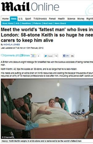 Keith Martin, se convirtió en el hombre más gordo del mundo luego que Manuel Uribe, el mexicano de 46 años que llegó a pesar 590 kilos, bajara a través de una operación, aunque actualmente, aún es considerado como el hombre más pesado en el libro de los Records Guinness.