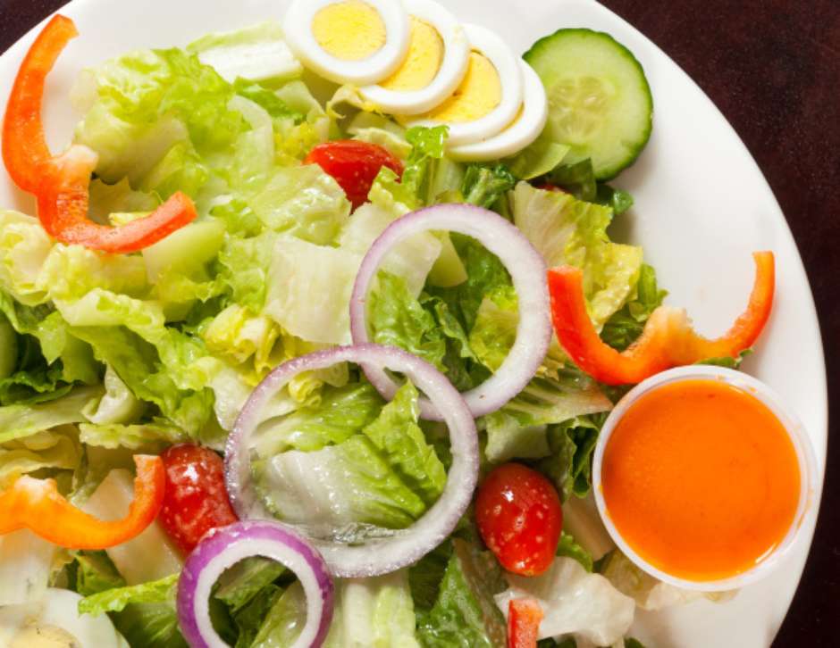 TORONTO, CANADA – 2013/03/11: Close up on a nutritious fresh garden salad containing lettuce,peppers,cherry tomatoes,red onions,cucumber, a boiled egg sliced, and french dressing. (Photo by Roberto Machado Noa/LightRocket via Getty Images)