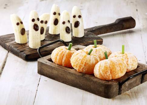 Healthy Fruit Halloween Treats Healthy Fruit Halloween Treats made into Banana Ghosts and Clementine Orange Pumpkins