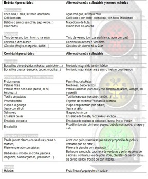 tabla de intercambios comidas y bebidas