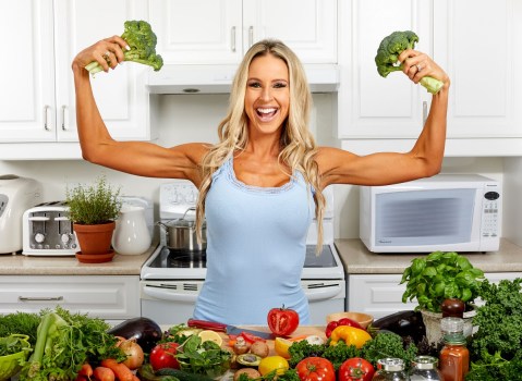 70951785 – strong woman with broccoli in the kitchen. 70951785 – strong woman with broccoli in the kitchen.