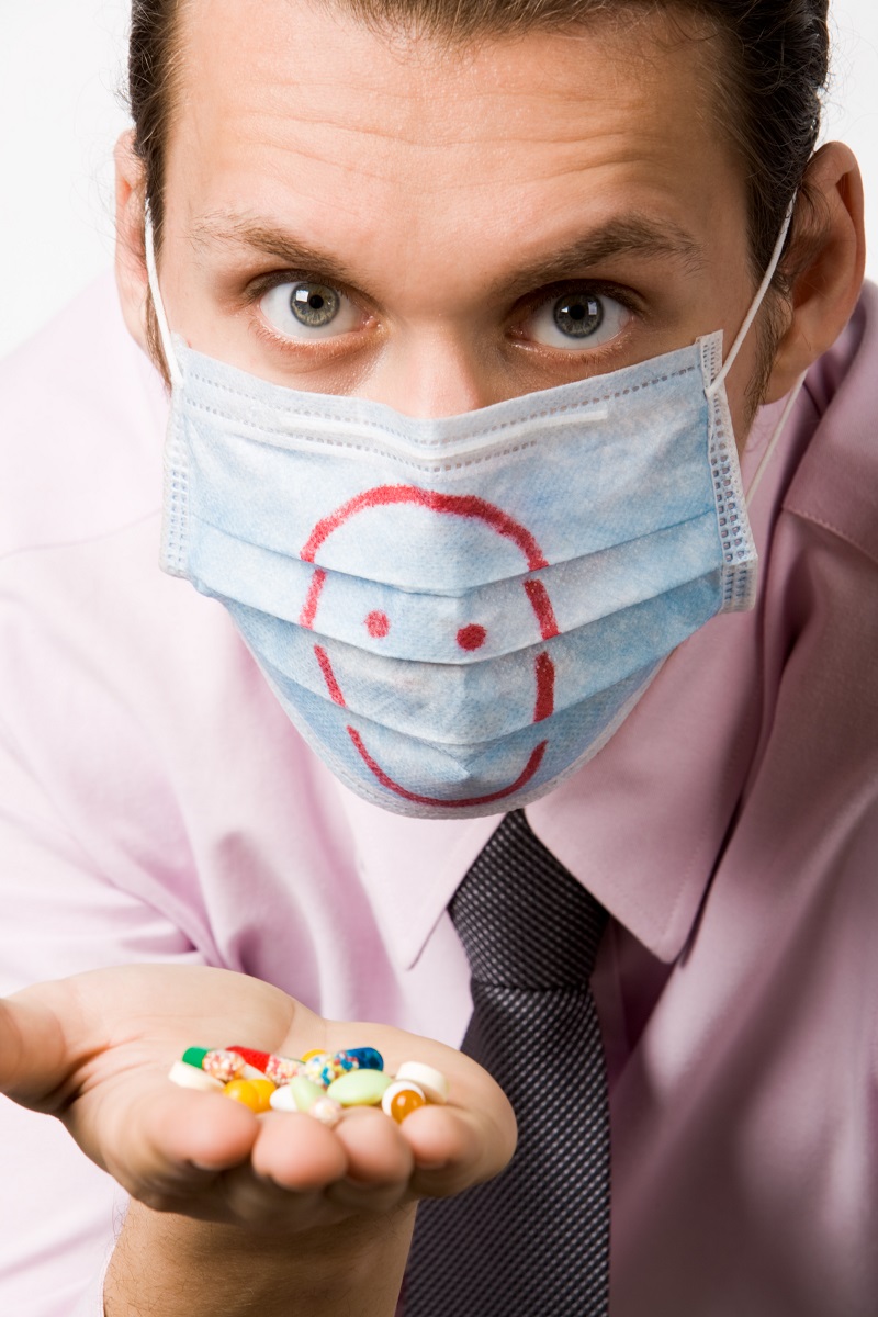 Imagen anterior Imagen siguiente Offering help Photo of masked man holding pills and looking at camera