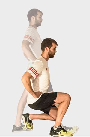 Aunque generalmente se le suele prestar menos importancia al tren inferior, es importante entrenar de manera equilibrada, lo que implica trabajar también con las piernas. Para ello, Adrián Sanso nos propone “la zancada”. “Adelanta una pierna, sin girar la cadera, y lleva las dos rodillas a flexión de 90º. Es muy importante que te fijes en que la rodilla de tu pierna adelantada no sobrepasa la punta del pie. Rodilla y talón han de estar en línea y el recorrido ha de ser vertical. Puedes realizar este ejercicio con una pierna una serie de repeticiones y cambiar o ir alternando una y otra. Notarás cómo trabajan cuádriceps, glúteo mayor, isquiotibial, recto anterior, psoas, femoral… También te permite trabajar en diferentes planos. Por ejemplo: apoyando el pie de atrás o el de adelante en altura transfiriendo mas esfuerzo en la pierna adelantada”.
